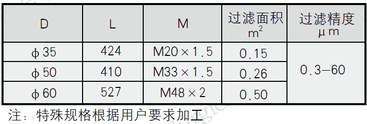 3)濾氈材質均為316L。