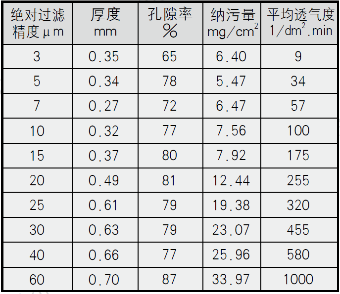 四、不銹鋼纖維燒結氈主要性能參數(shù)表